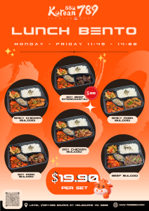 Your weekday lunch just got an upgrade — 789 Korean BBQ Melbourne is now serving a range of delicious Classic Bento Sets starting from just $19.90.