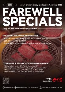 ✨ Farewell Promotion (Sun–Fri, available only at 678 Korean BBQ Eastwood):